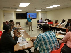 3rd insert: Workshop Facilitator, Kelvin Sergeant, ILO Specialist for Sustainable Enterprise & Job Creation presenting to the workshop participants.