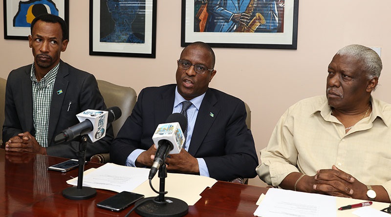 Pictured from left: Director of Sports Timothy Munnings, Minister Pintard and Mr. Sands.
