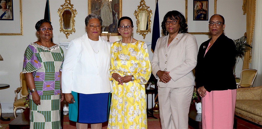 #Bahamas, May 05, 2018 – Nassau – Members of Pan American Health Organization and World Health Organization (PAHO/WHO) called upon Governor General Her Excellency Dame Marguerite Pindling at Government House on Monday, April 30, 2018.  Pictured from left: Dr. Esther de Gourville – (PAHO/WHO) Repesentative; Dr. Merceline Dahl-Regis – PAHO’s ‘Public Health Hero of the Americas’ Awardee; H.E. Dame Marguerite Pindling; Dr. Carissa Etienne – (PAHO/WHO) Director; and Dr. Merle Lewis – PAHO Chief of Staff.