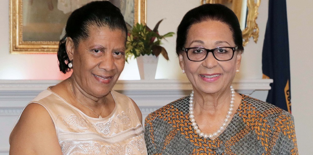 #Nassau, June 10, 2018 – Bahamas – Governor General Her Excellency Dame Marguerite Pindling was presented a book entitled, “The Journey” by Mrs. Emily Osadebay on June 4, 2018, in the Drawing Room of Government House.