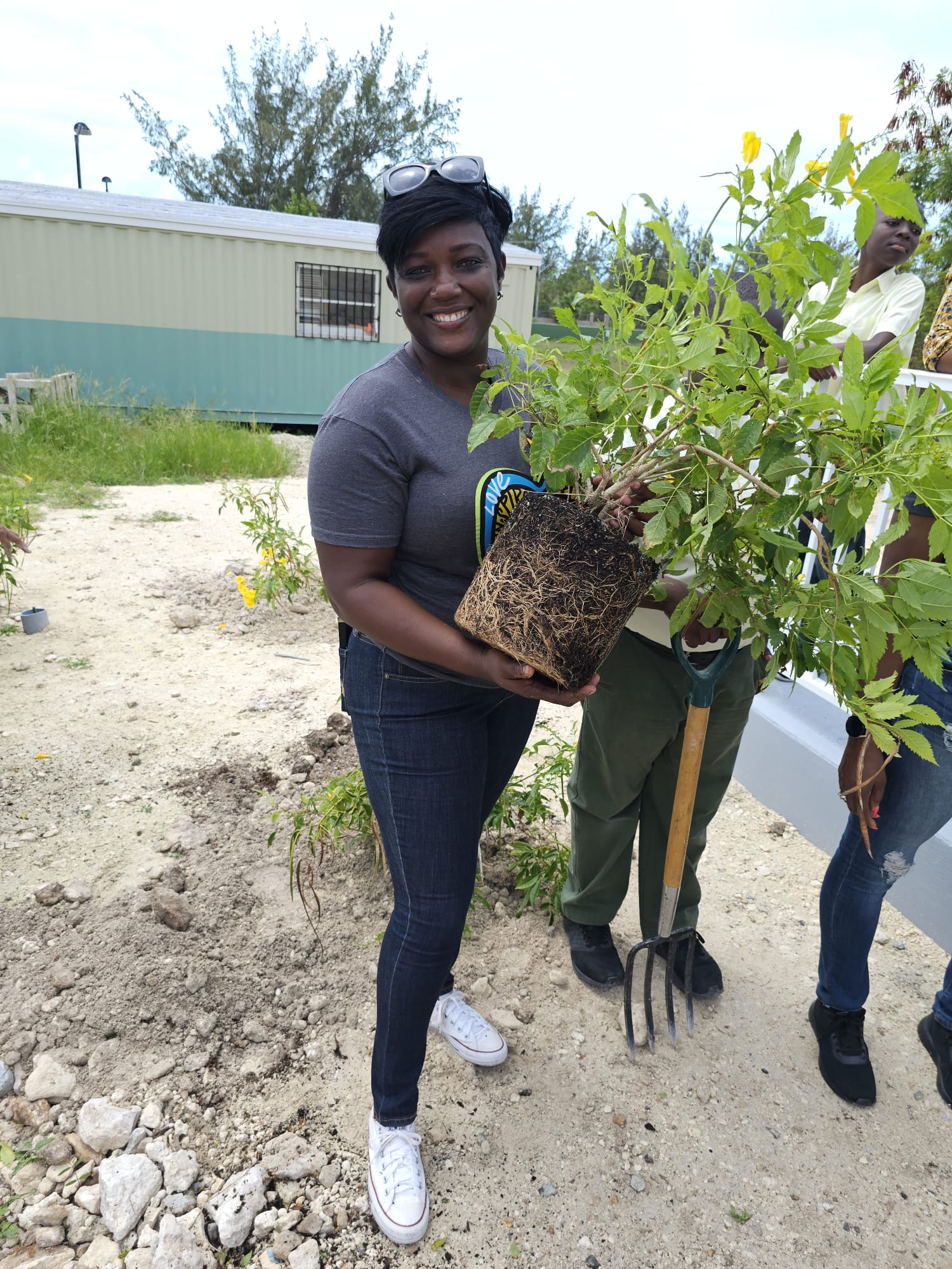 2nd insert: Beaches Turks and Caicos resort Simone Woodfine from the Bar Department prepares to plant a tree at one of our schools to celebrate the mission of providing a healthier environment for the Turks and Caicos Islands