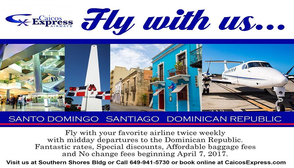 You can fly to Santiago and Santo Domingo in the Dominican Republic on your favorite airline, Caicos Express Airways.  Flying twice weekly, midday departures at fantastic rates and offering great benefits like discounts on hotels, car rentals, doctor appointments and more when you fly exclusively with Caicos Express.  Best of all, Caicos Express has affordable baggage fees and no change fees.  Now when you go to the DR, you can go with Caicos Express Airways, no better way to fly.03