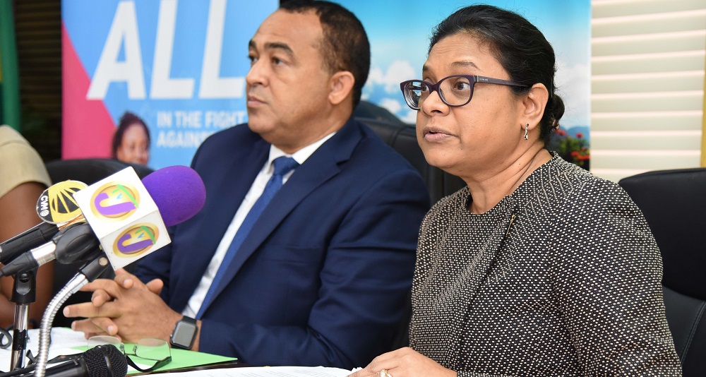 Photo Caption: Chief Medical Officer in the Ministry of Health, Dr. Jacqueline Bisasor-McKenzie, addresses a press conference on the United Nations High-Level Meeting on Non-Communicable Diseases (NCDs), held at the Ministry’s New Kingston offices on Monday (October 8). At left is Minister of Health, Dr. the Hon. Christopher Tufton.