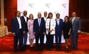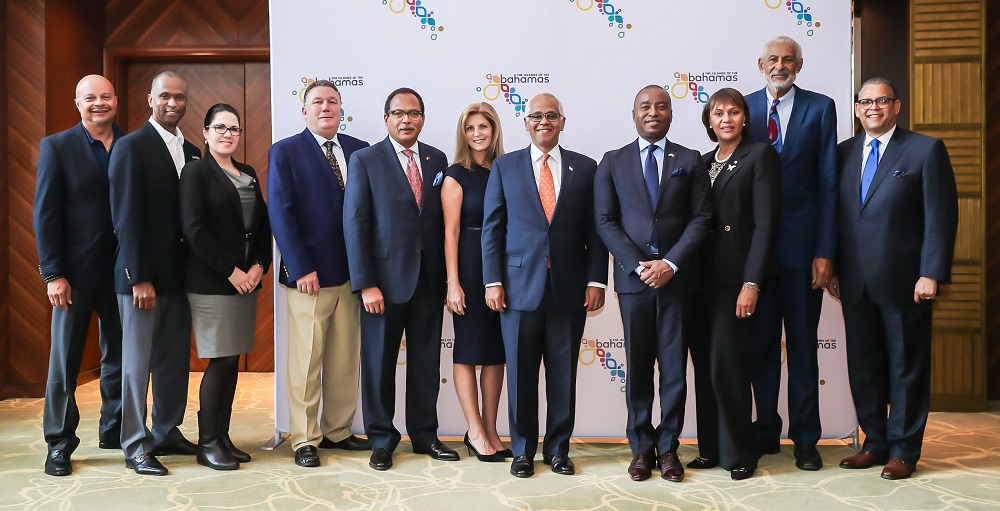 Header: From ( L-R):  Deputy Director General, BMOTA, Ellison Thompson; Senior Director for Canada and China, BMOTA, Paul Strachan; International Marketing Manager, Baha Mar, Ana Lidia Cerna; Director, Majestic Tours, B.J. Saunders; Russell Miller, Senior Vice President and General Manager with responsibility for the Cove and Reef properties; Wendy Blaney, Sr. Vice President of Sales for Atlantis Resort; Minister of Tourism and Aviation, the Hon. Dionisio D’Aguilar;  Minister of Foreign Affairs; the Hon. Darren A. Henfield; Director General of Tourism, Joy Jibrilu, His Excellency Sterling Quant, Bahamian Ambassador to China; Robert Sands, Sr. Vice President of Administration and External Relations for Baha Mar.