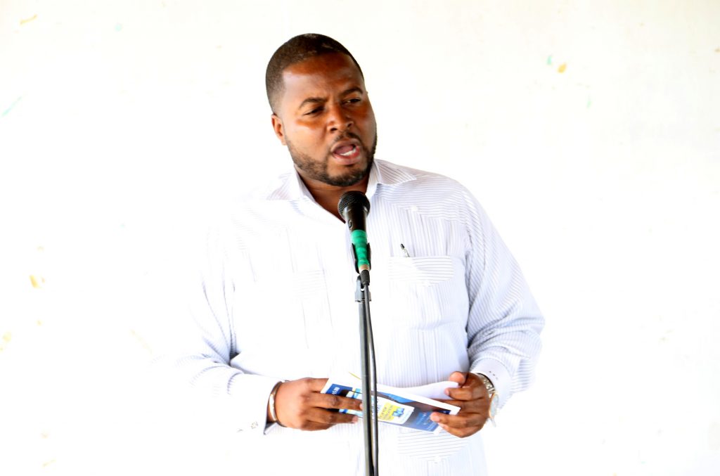 1st insert: Water & Sewerage Corporation Executive Chairman and MP for Long Island, Adrian Gibson gives remarks at the groundbreaking ceremony for a potable water distribution system in Crooked Island.