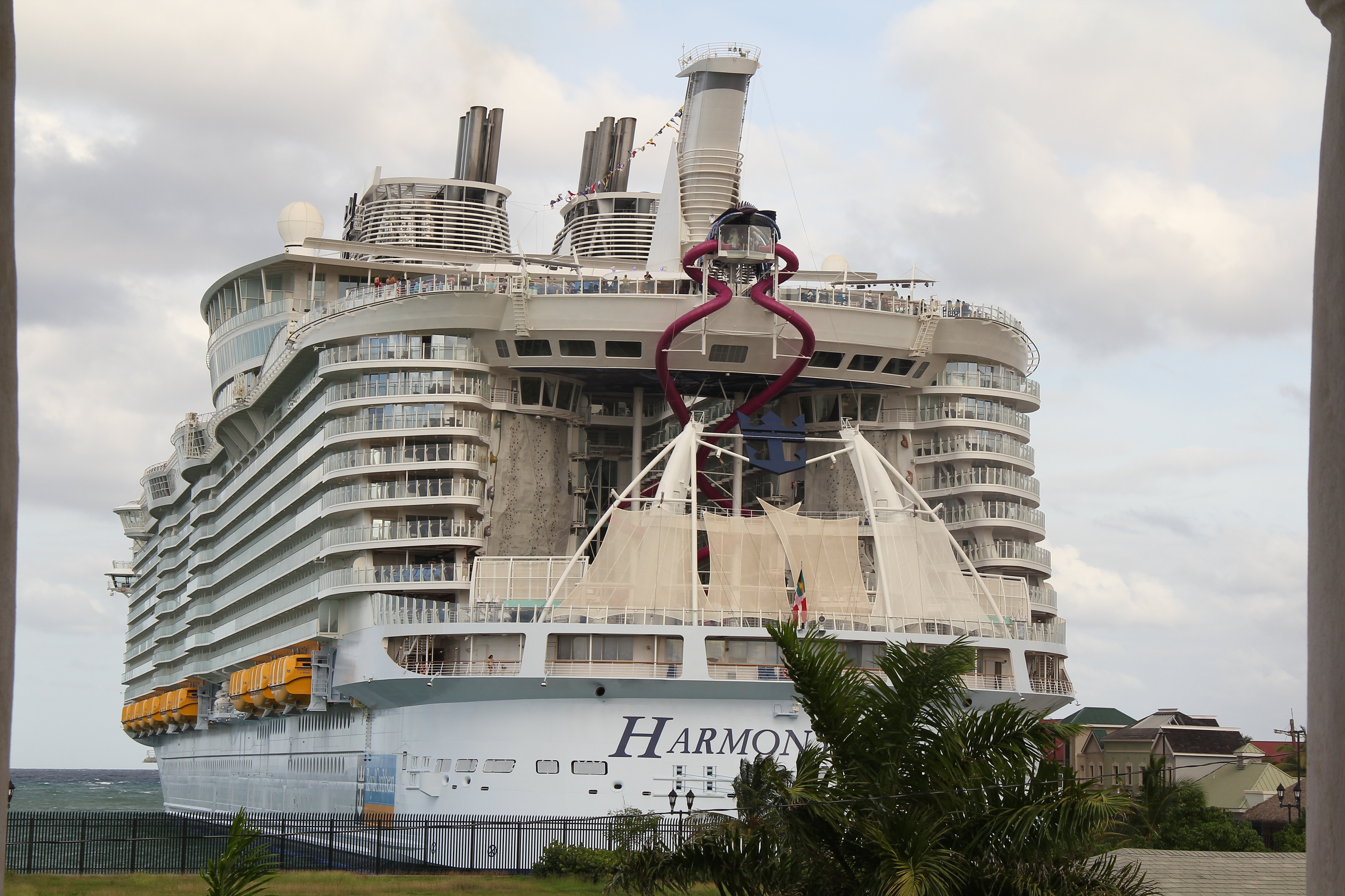 Header: Harmony of the Sea, the second largest cruise ship in the world, makes a call at the Falmouth Port.