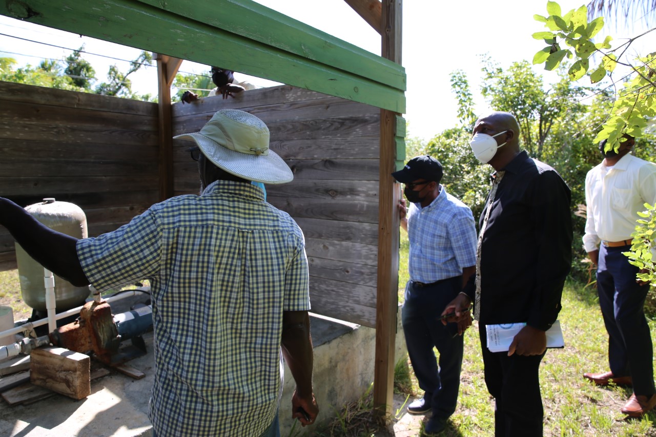 Header: A tour of Sweeting’s Cay was on the agenda for Minister of Public Works and Utilities, the Hon. Alfred Sears when he came to Grand Bahama on Thursday. While there, he was updated on the status of the school, administrator’s office, and had the chance to stop in and view the turtle pond.