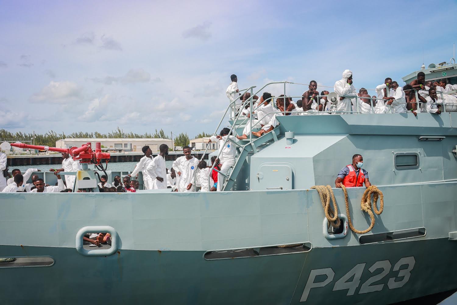 To ensure a smooth handover and transfer process, RBDF’s surface assets, HMBS LL. Smith and Safe Boat, were deployed to facilitate the transfer of the 275 migrants that took place at Coral Harbour Base. On Monday, 17th July, HMBS LL. Smith arrived alongside Coral Harbour Base, where a comprehensive profiling of the migrants was conducted.