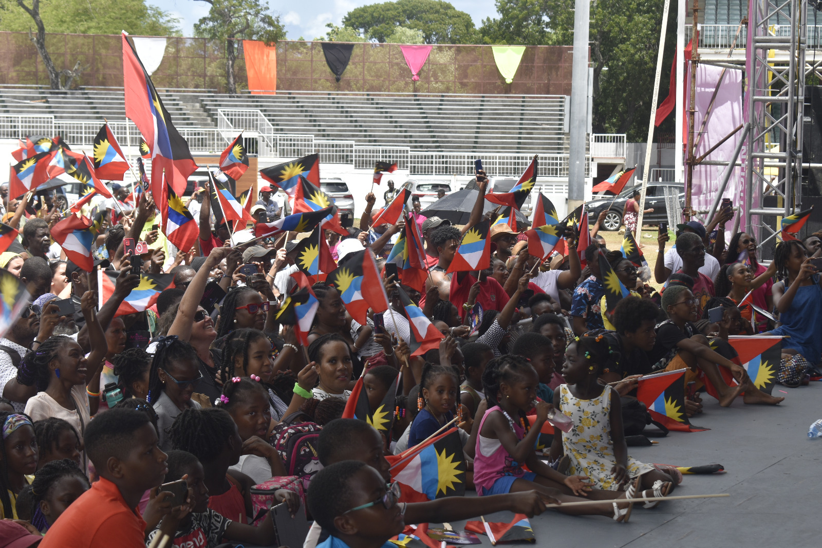You see we would see the Antiguan flag just waving, the entire morning and the Antigua flag is  full of  vibrant colors and you just saw a sea of colors just filling the field, hundreds of individuals just supporting the entire event.