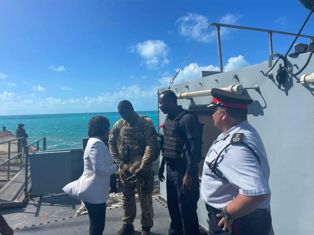 #TurksandCaicos, August 18, 2023 – On August 14, Her Excellency the Governor went on board HMBS Bahamas to thank the Captain and crew for their partnership and supportive border security efforts. Last night, the HMBS Bahamas Defence Force vessel was part of a successful multi-agency OPBAT intercept operation in our territorial waters. A member of the RTCIPF and a member of the TCI Regiment were on board HMBS Bahamas as ship-riders involved in the operation.