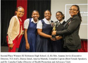 The competition was adjudicated by respected judges representing various sectors, including advocacy- Ms. Anansa Jervis (Head Judge), Executive Director, Turks and Caicos AIDS Awareness Foundation (TCAAF); education – Mr. Edgar Howell, Director of Education; legislation- Ms. Desiree Downes, Principal Legislative Drafter, Attorney General’s Chambers; and the medical profession- Dr. Kevin Mais, Medical Officer, Primary Health Care Department.  Their expertise and impartial evaluation ensured a fair and rigorous competition. The timekeeper was Mr. Leonard Glasgow.