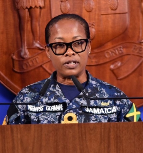 2nd insert: Chief of Defence Staff, Vice Admiral Antonette Wemyss-Gorman, speaks at an emergency press conference, held today (August 12) at the Office of the Prime Minister in Kingston.