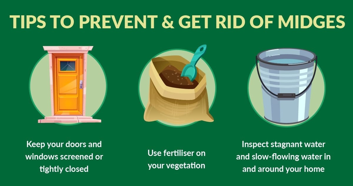 • Install Insect Screens: Ensure that windows and doors have fine-mesh screens to prevent midges from entering indoor spaces.