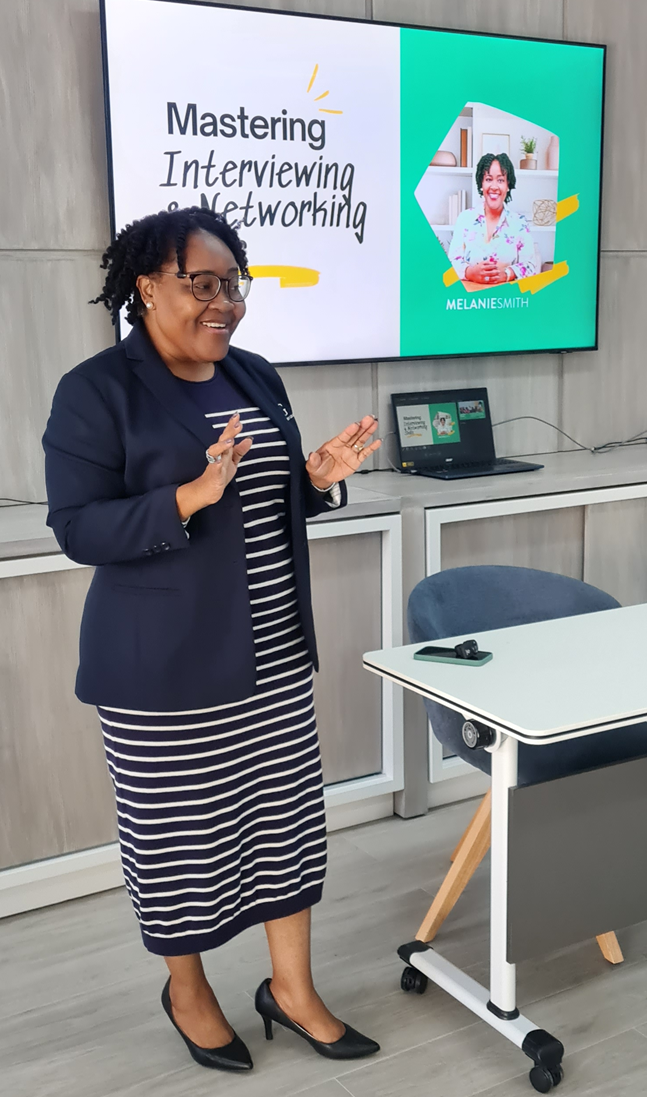 Mrs. Smith emphasised the crucial role of interviews, not just as a means of securing opportunities but as a powerful platform for individuals to showcase their skills, confidence, and value. She also highlighted the importance of networking, stressing that staying visible, fostering key relationships, and making meaningful connections are just as vital as acing an interview.