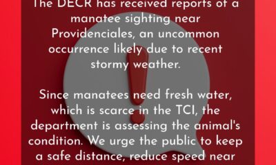Providenciales – Turks and Caicos Islands – Tuesday, 6 August 2024: The Department of Environment and Coastal Resources (DECR) has had reports of a manatee sighted near...