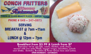 Conch Fritters Takeaway Restaurant is located in the Touch of Class Beauty Plaza, Airport Road, serving breakfast between the hours of 7am to 11am, and serving...