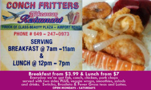 Conch Fritters Takeaway Restaurant is located in the Touch of Class Beauty Plaza, Airport Road, serving breakfast between the hours of 7am to 11am, and serving...
